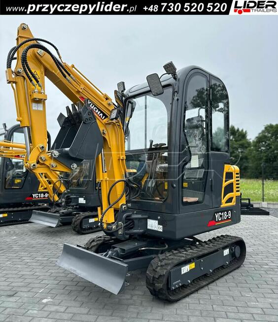 Koparka, minikoparka, YUCHAI YC18-9, silnik DIESEL YANMAR 3 cylindrowy Silnik Yanmar Zapas mocy silnika zwiększony o ...